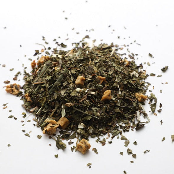 Ingredients: Peppermint leaves, echinacea, apple pieces, orange, eucalyptus, lemon grass, natural orange flavor, juniper berries.
